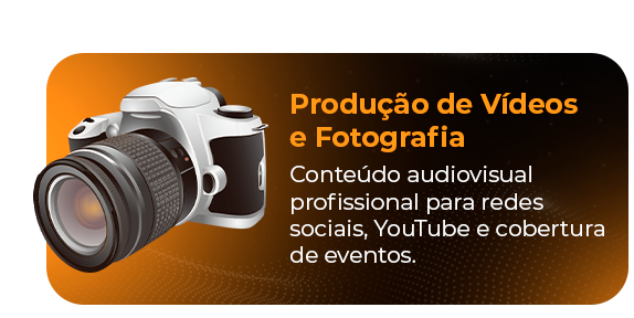 Conteúdo audiovisual profissional para redes sociais, YouTube, campanhas publicitárias e cobertura de eventos.