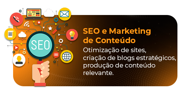 Otimização de sites, criação de blogs estratégicos, produção de conteúdo relevante e campanhas de link building.